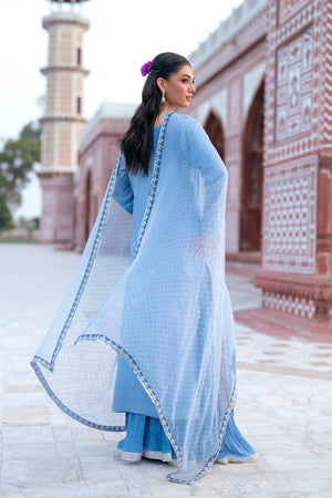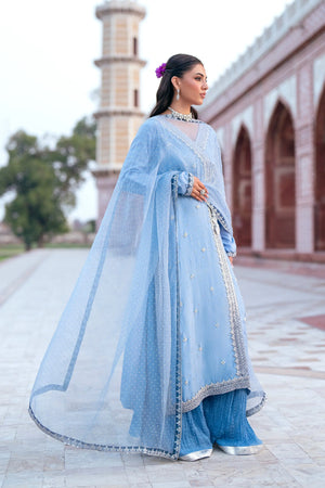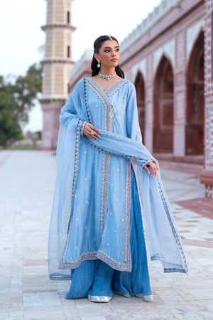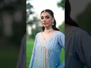 A breathtaking ode to timeless elegance, this pastel sky-blue ensemble from the Noor-e-Jahan Collection embodies regal sophistication with a modern grace. 🌸