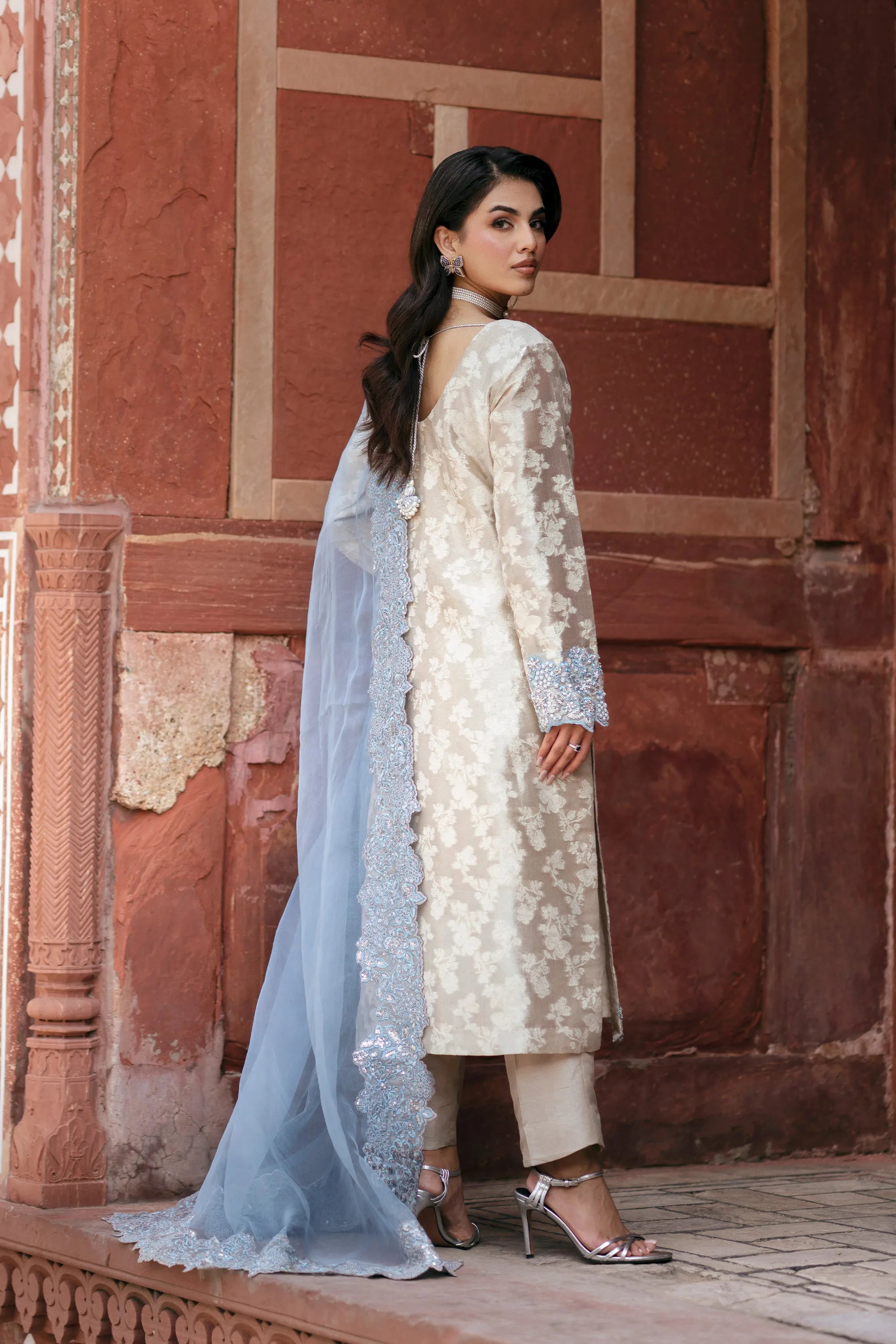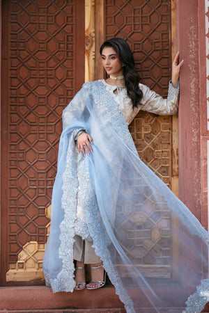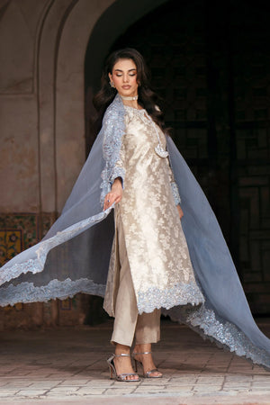 Color: Dull Gold Shirt with Contrasting Sky Blue Dupatta
