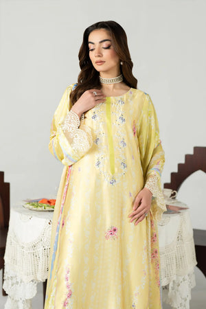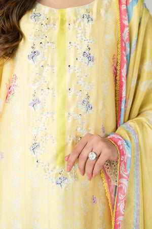 This outfit gives a fresh gracefull and timeless look.A beautifully flowing long shirt crafted in a soft pastel yellow base adorned with delicate floral prints in subtle shades.The minimalist round necklins keeps the look elegant and understated allowing the floral pattern to stand out.The shirt features a loose straight silhouette that drapes effortlessly offering both comfort and sophistication.The hemline is a gracefully detailed with scattered floral motifs creating a balanced and harmonious design paired with neutral toned trouser this ensemble exudes a serene and polished charm.This outfit is perfect for fesitve occasions or daytime events