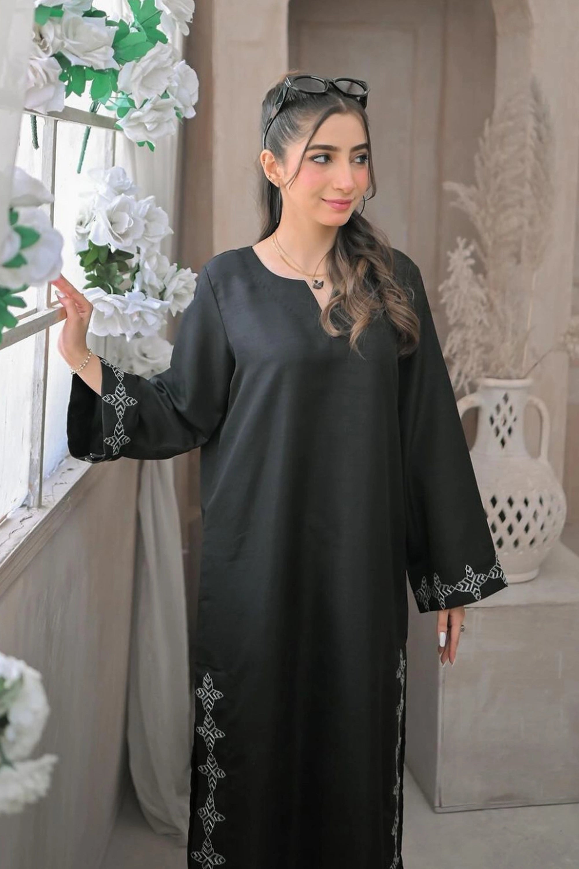 Smoky Black Embroidered Raw Silk Pret 2Pcs