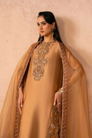 - This outfit is a graceful and sophisticated traditional ensemble in a rich warm caramel-brown tone.