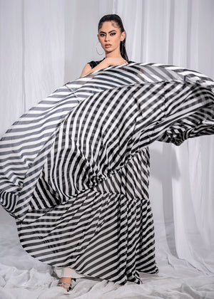 Strip Lining Flared Gown | B/W Striped Flare Gown