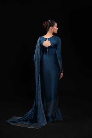 Teal Temptation Embroidered Silk Saree 2Pcs