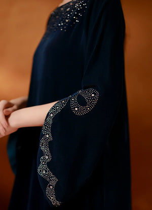 Teal Velvet Kaftan Embroidered Pret 1Pcs