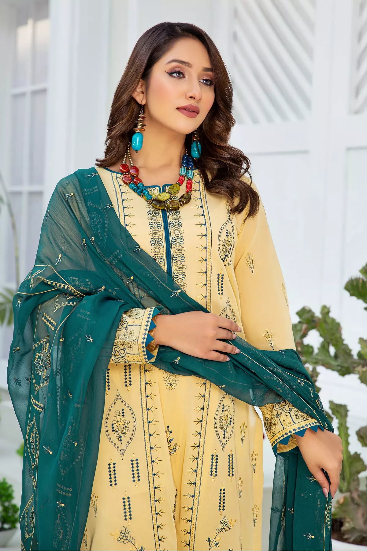 Embroidered Swiss Lawn with Crinkle Chiffon Dupatta & Cotton Trouser.