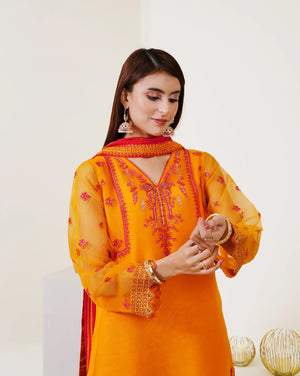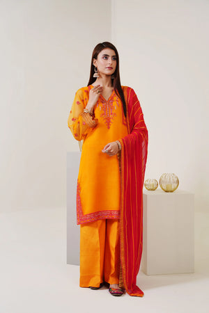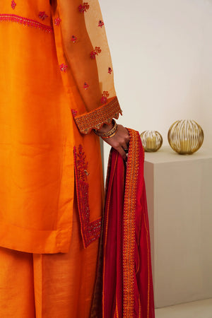charm. Completing the ensemble, contrast chiffon dupatta and plain raw silk