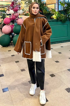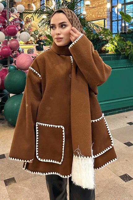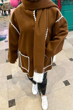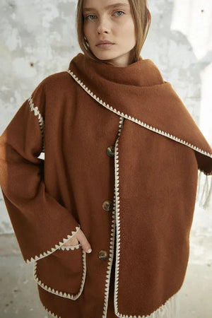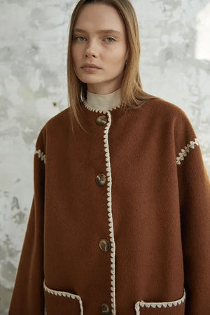 Wrap yourself in warmth with our loose-fit chocolate brown wool coat. Its rich, earthy tone exudes elegance while keeping you cozy all winter long. Designed for easy layering, it offers both comfort and style. A timeless piece to elevate your cold-weather wardrobe.