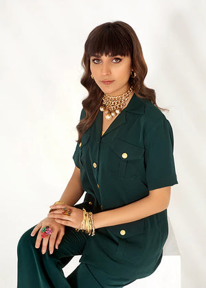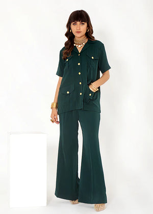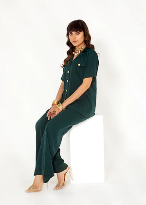 Our ‘Turquoise Sands’ is a tailored two-piece dress with timeless elegance and sophistication. This safari suit features a dark turquoise hue that adds a touch of richness and depth to your look. Dark shades and their striking contrast against the golden buttons make you stand out from the crowd! The tailored fit ensures a flattering silhouette, emphasizing comfort and style for all occasions.