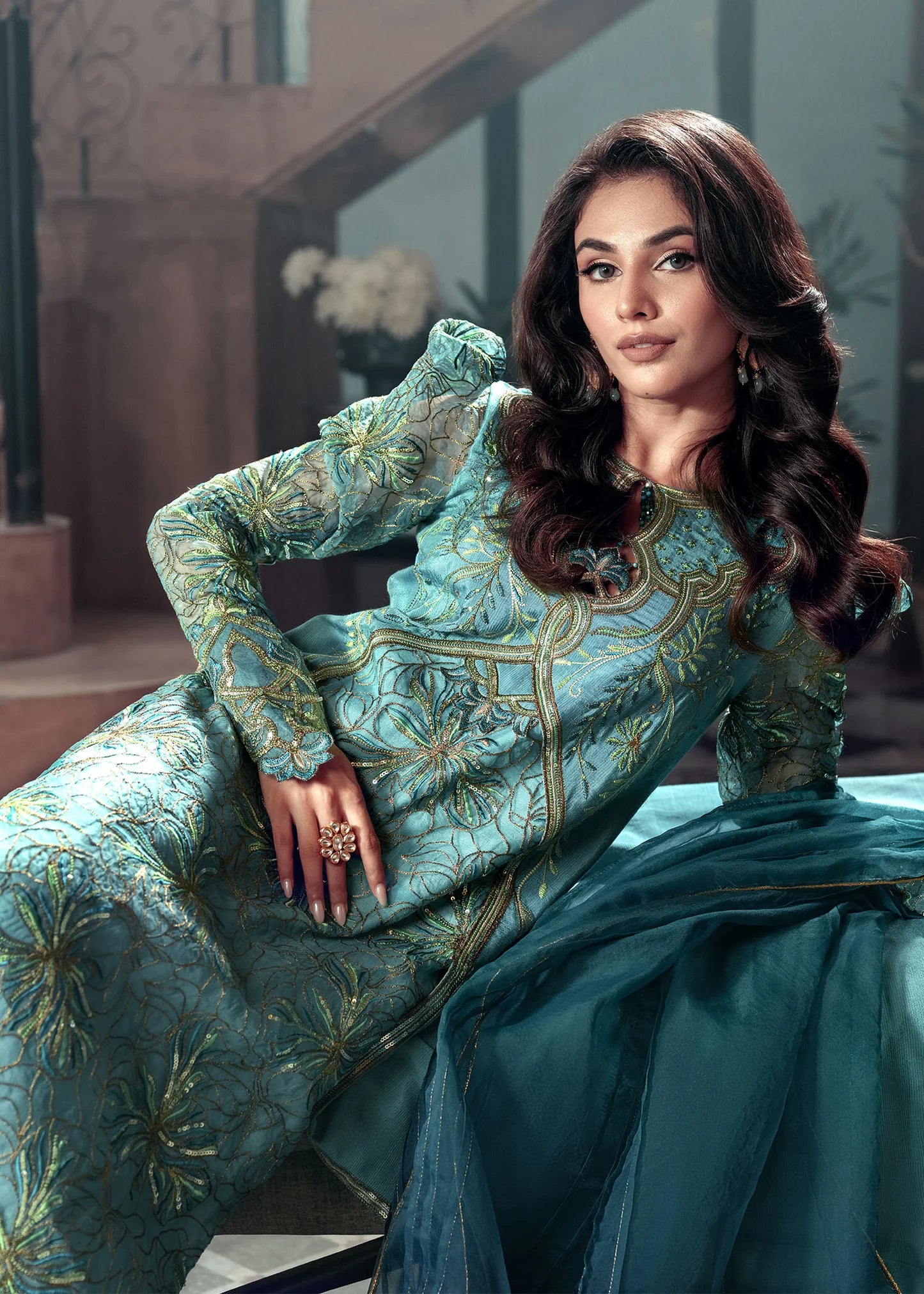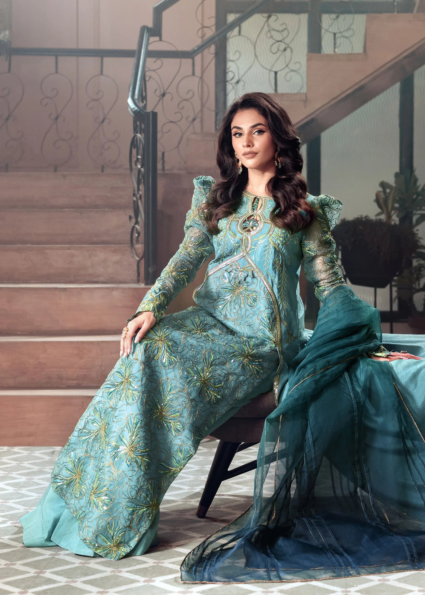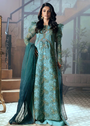 Elevate your wardrobe with this exquisite lavender ensemble, a perfect blend of modernity and tradition. The outfit features a PK raw silk shirt with elegant embroidery, enhanced by side slits and a front open design, complemented by intricately embroidered organza sleeves and a middle panel. The look is completed with a lightweight organza dupatta adorned with zari Dori detailing, and coordinating PK raw silk pants. This fashion-forward design is ideal for those who love to make a style statement while embracing their cultural heritage..