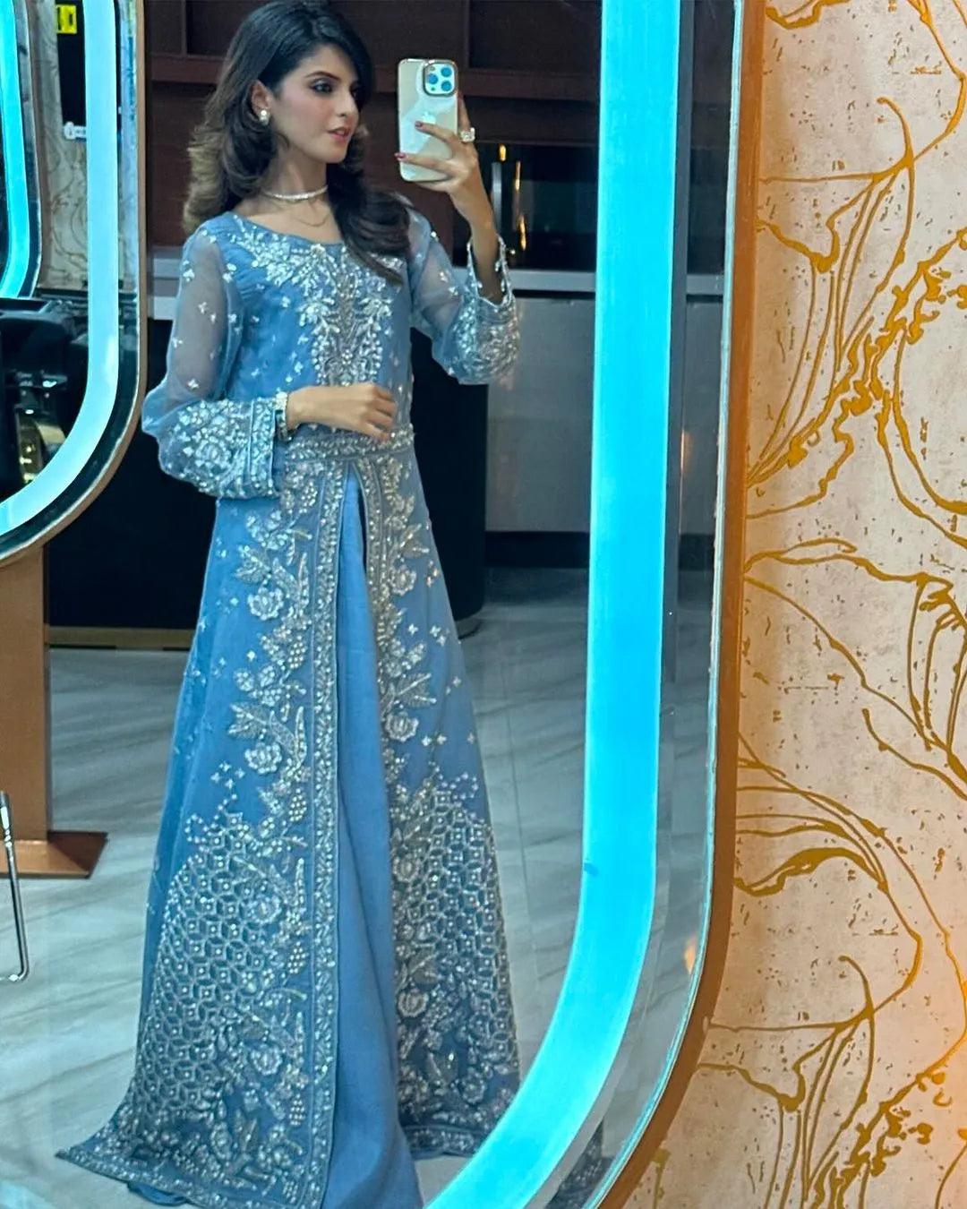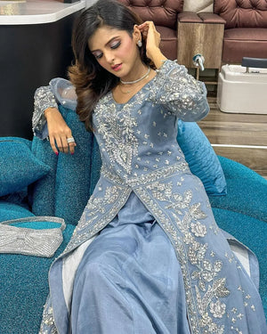- Organza Embroiderd Hand Emballished Sleeve 26″”