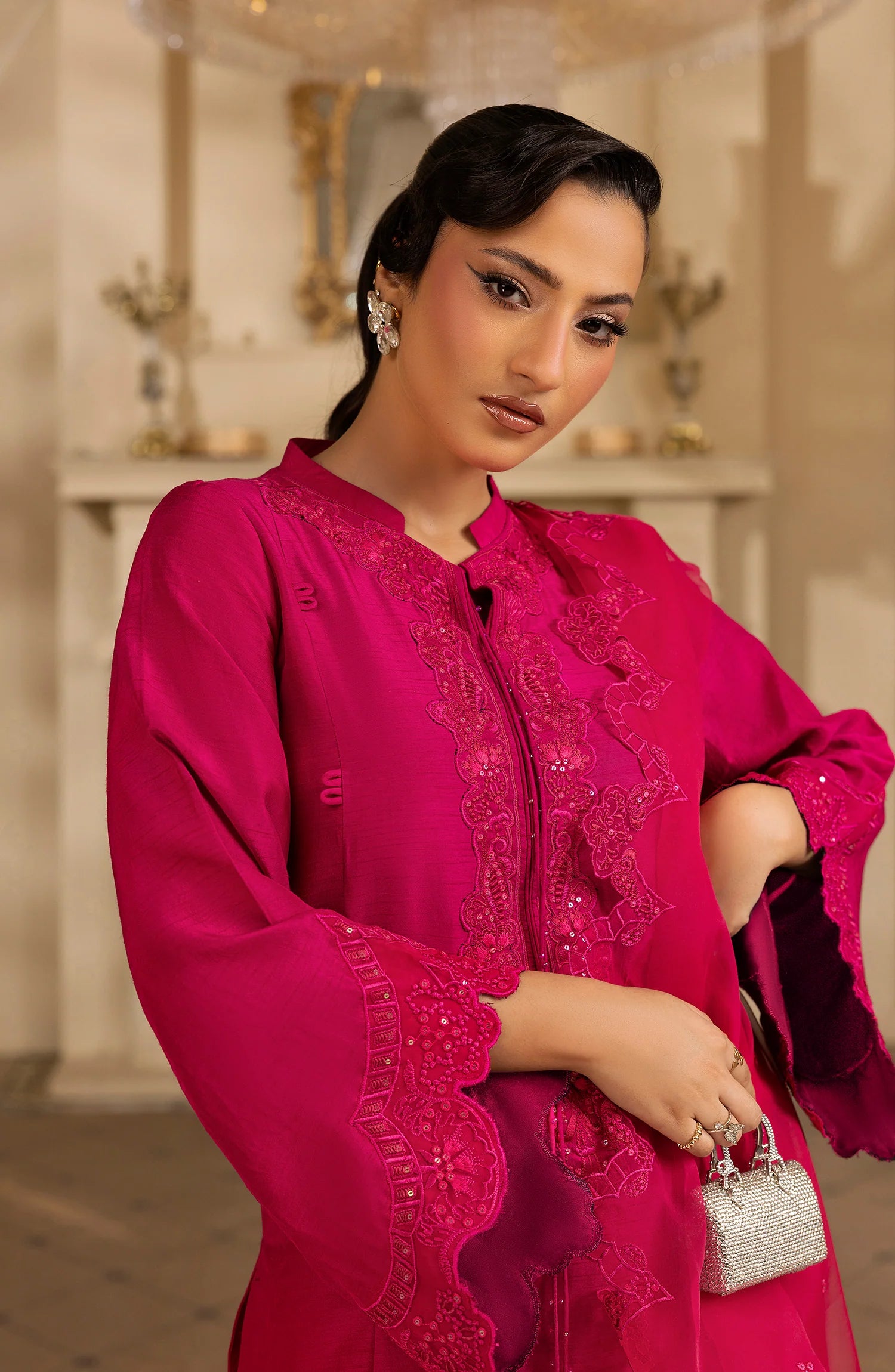 A statement of subtle grace — this fusia pink Korean raw silk shirt is adorned