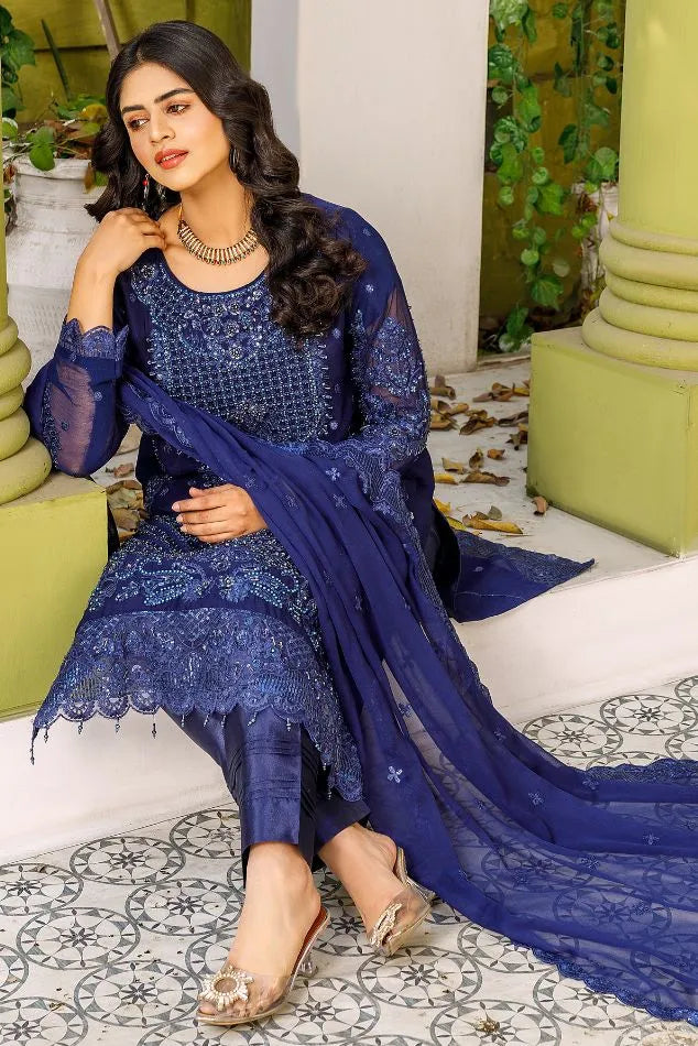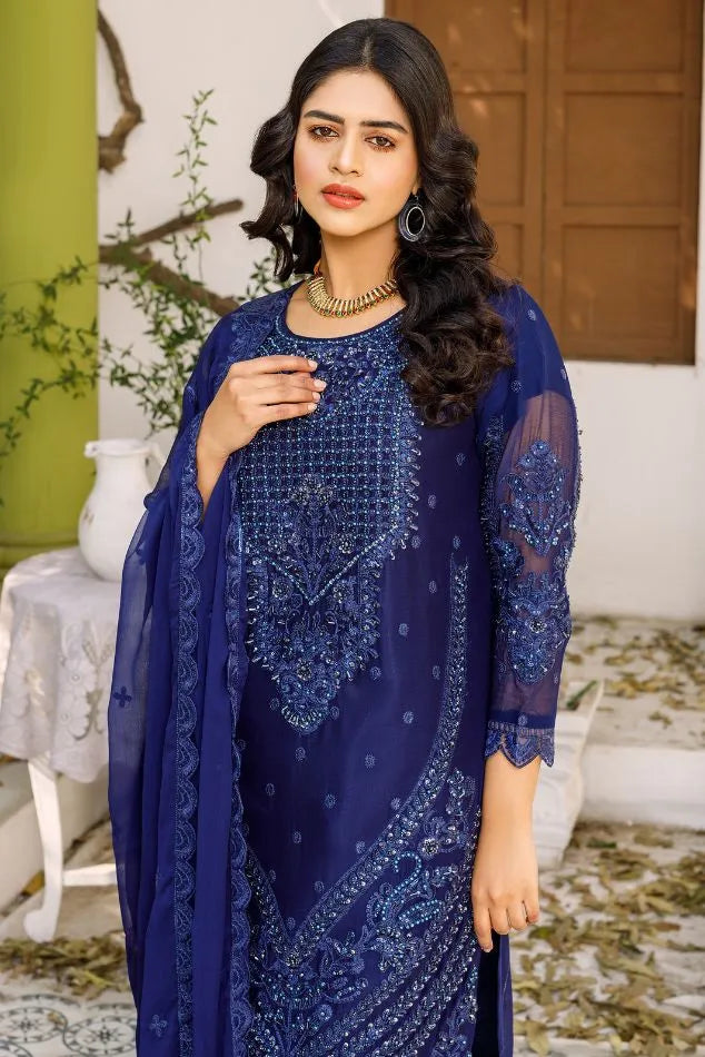 - Embroidered Sequins Chiffon Front with Heavy Hand EmbellishmentEmbroidered Sequins Chiffon Back with Patch