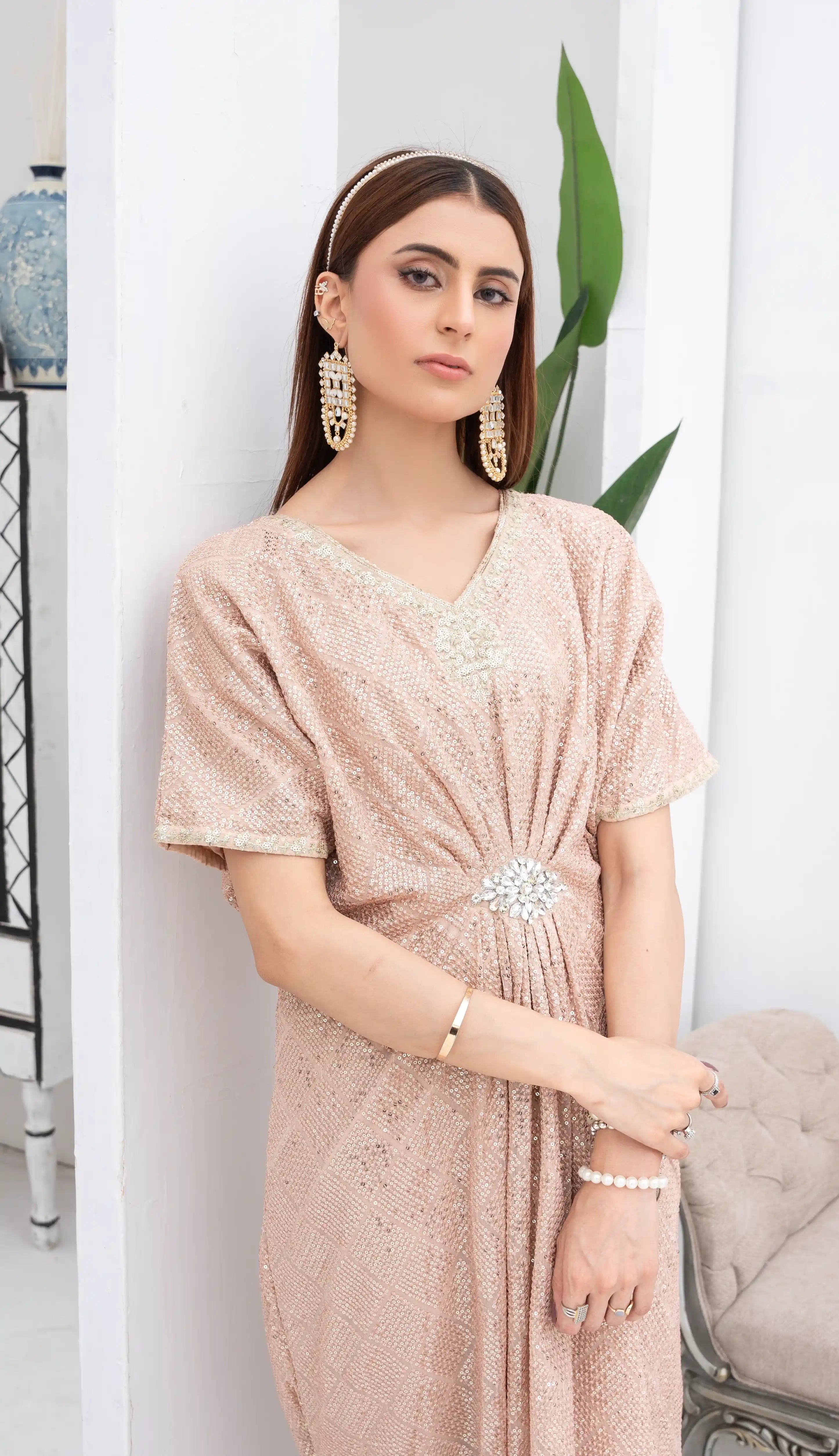 Additional Description: Luxury chiffon sequence embroidered kaftaan Lining malai is Attached and will be include Stitched stock include shirt , lining , trouser Stitched will be same as shown in the image Disclaimer: Actual product color may vary slightly from the image.