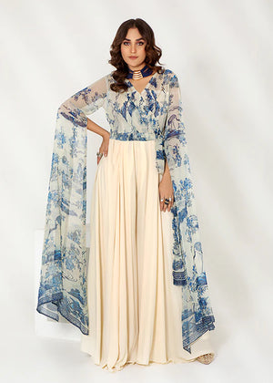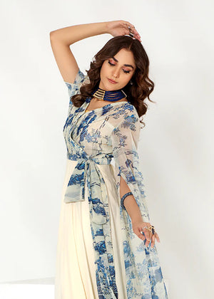Crafted with meticulous attention to detail, our ‘Whispering Breeze’ features a flared bottom with a customizable length, which is customizable for our clients. Mesmerizing blue and white printed layer that gracefully overlays a pristine white base and custom signature of Dure.St’s prints adds an enchanting touch, showcasing a harmonious blend of intricate patterns and captivating designs. Embrace the beauty of these contrasting colors that create a striking visual impact reminiscent of a serene summer sky.