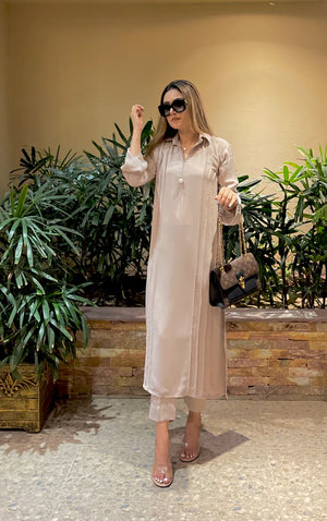 Woody Almond Sleeves Flower Crepe Pret 2 Pcs