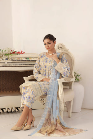 ZARNAZ Floral Gray, Creamy White Pret 3 PCs