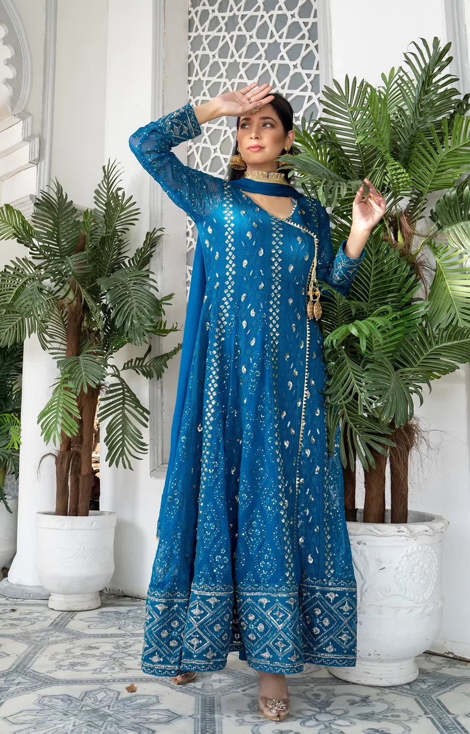 - This stunning fully embroidered angrakha which has an intricate sequence work. Lovely handmade dori tassel and gota laces are added to give it a polished appearance. You can wear this adaptable outfit to both daytime and evening events. This magnificent shirt is worn with a plain chiffon dupatta bordered with kiran lace and a pair of malai crap pants. This season, you need this artsy attire if you want to rock the chic appearance.