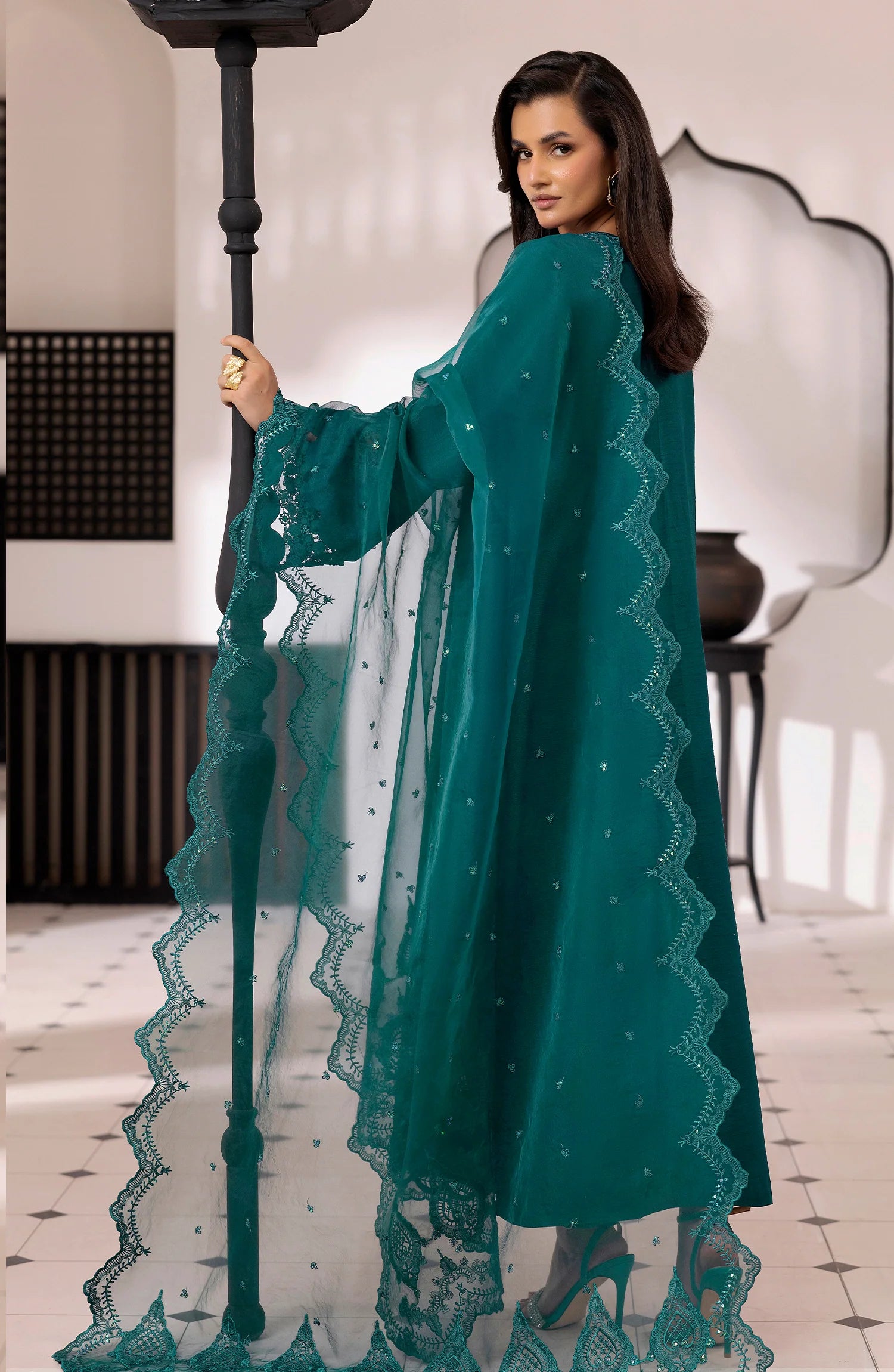 Paired with a organza dupatta beautifully enhanced with sequence embroidery